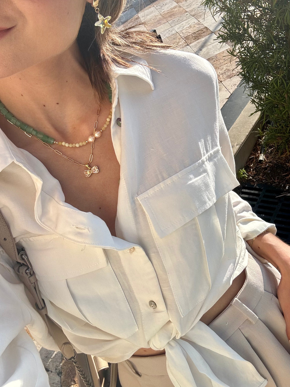 Our Treasured Paradise Green Gemstone Choker is a best-seller for a reason! Designed for vibrant, tropical summer fun, this eye-catching piece features a stunning mix of green aventurine and yellow opal gemstones, radiating fresh, sun-kissed energy. Whether styled with a breezy sundress or layered with gold chains for a bold statement, this choker is your go-to for effortless, vacation-ready glamour.