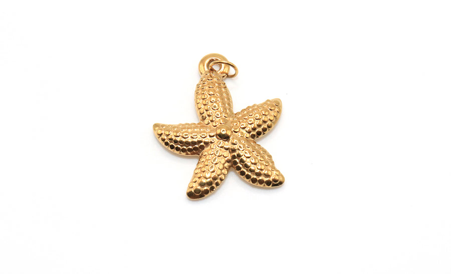 The ultra golden sparkle of summer magic — this whimsical starfish charm is the perfect staple detail for beach lovers and dreamers alike. Add this starfish to your charm pieces for that everyday coastal touch of fun.